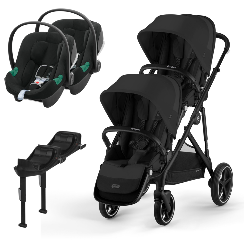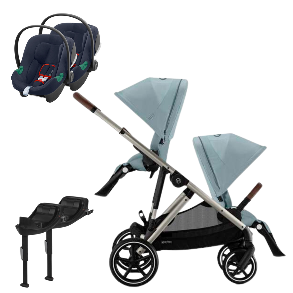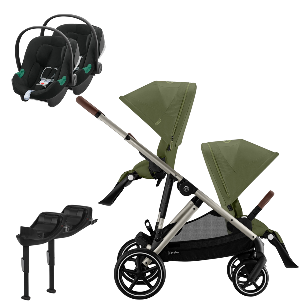 Conjunto composto por carrinho Gazelle S, segundo assento Gazelle S e duas cadeiras auto Aton B2 e mais duas bases One. Permite uma solução à medida desde o nascimento até aproximadamente aos 4 anos.