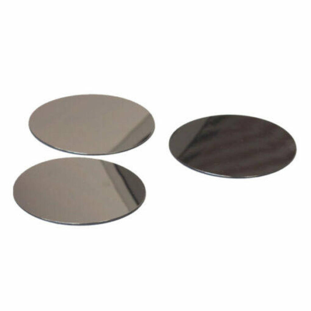 O Pack 10 espelhos circulares contém: 10 espelhos circulares de 12 cm, feitos de um plástico resistente e macio que reflete como um espelho.