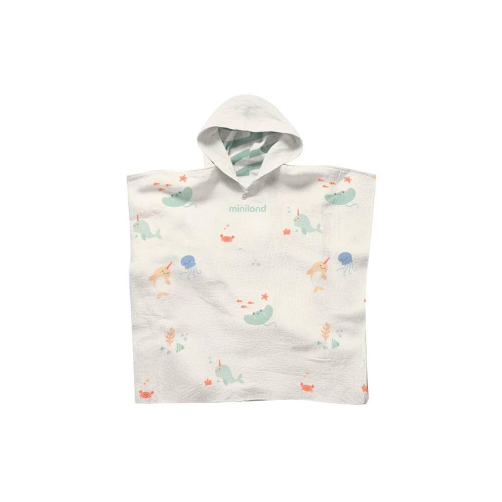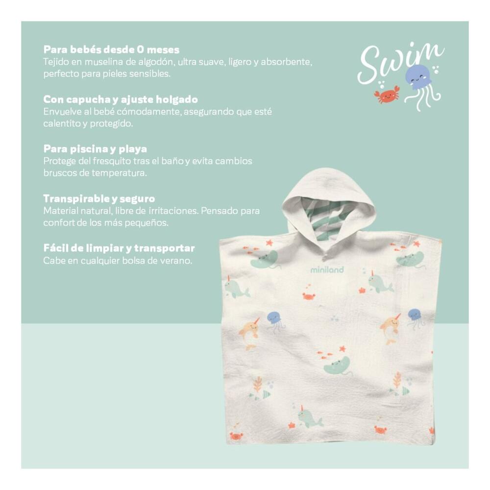 O seu design com capuz e modelagem solta permite envolver o bebé confortavelmente, garantindo que ele se mantém quente e seco em todos os momentos, seja na praia, na piscina ou depois do banho em casa. Além disso, o seu tecido natural é suave para a pele sensível, sendo uma opção segura e confortável para os mais pequenos.