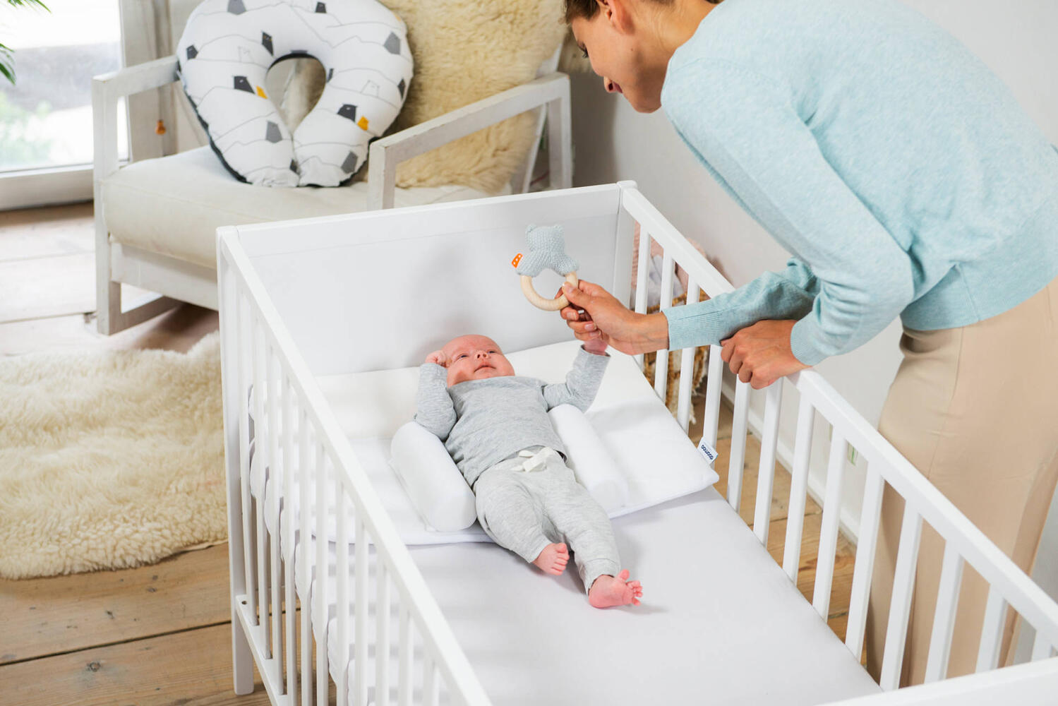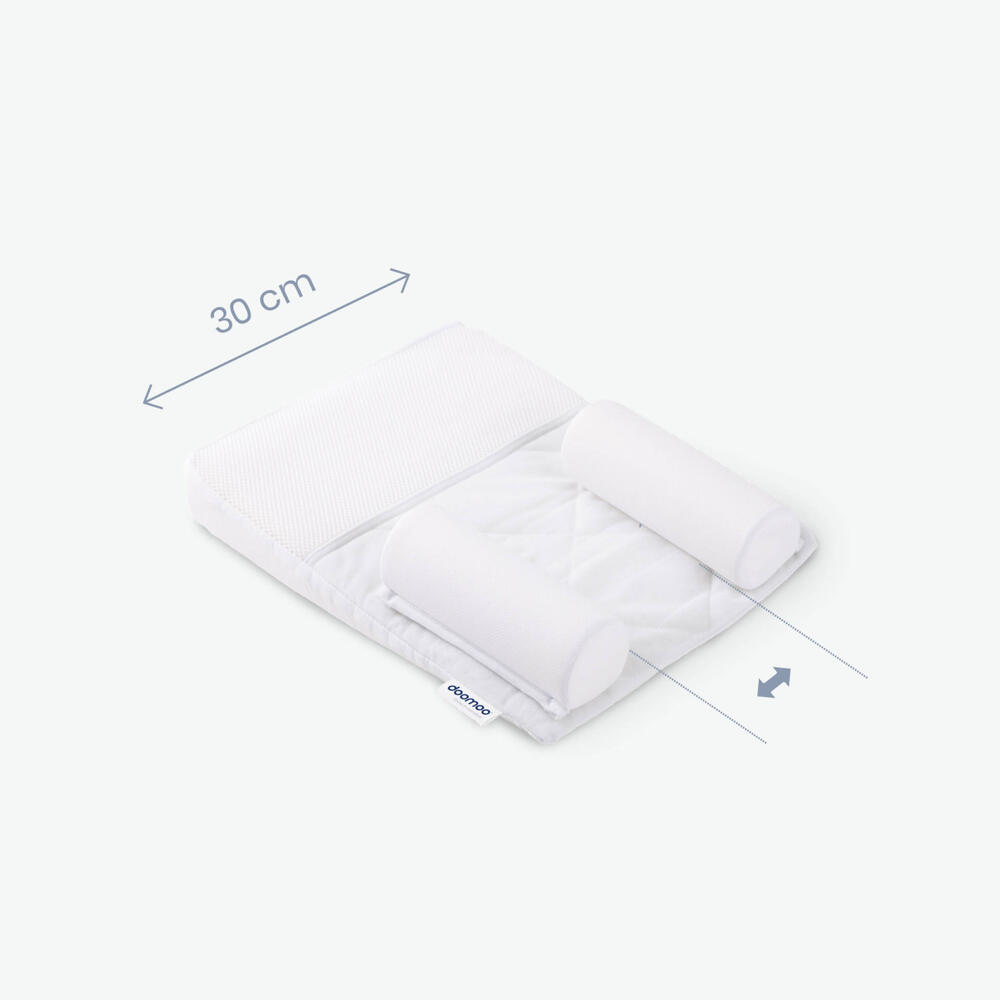 O Supreme Sleep permite que o bebé fique deitado confortavelmente de costas, prevenindo o risco de plagiocefalia “cabeça plana” derivado desta posição. É um posicionador inclinado em espuma de memória viscoelástica com dois rolos laterais que podem ser ajustados com fixações de velcro. A espuma de memória viscoelástica molda-se perfeitamente à cabeça do recém-nascido sem exercer qualquer pressão.