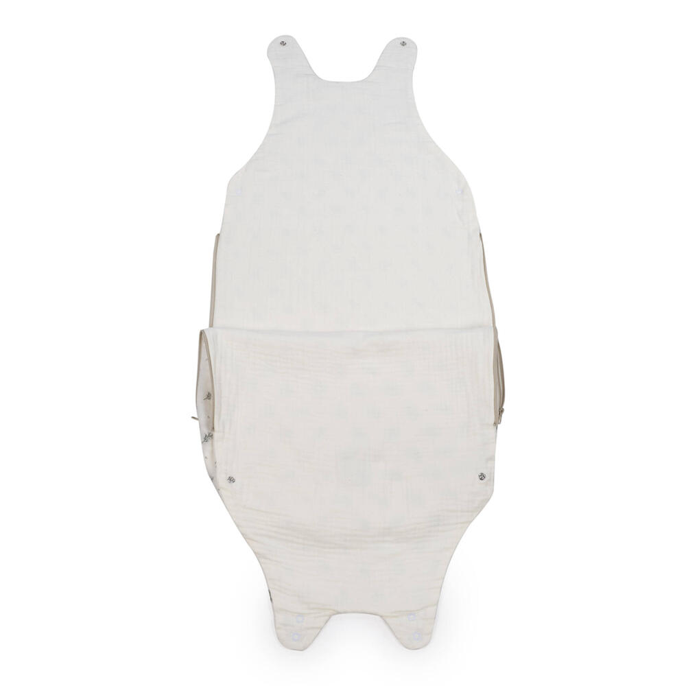 Confeccionada em musselina 100% algodão estampada com flores em tons neutros, extra macia e respirável, perfeita para a pele delicada do recém-nascido. O design sem mangas permite liberdade de movimentos, mantendo o bebé aquecido durante toda a noite.