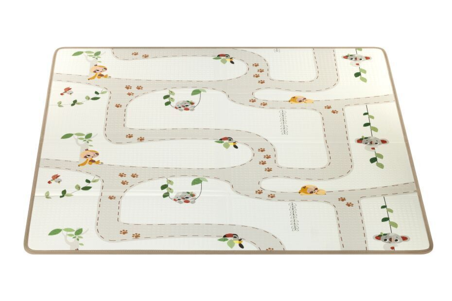 Um tapete de atividades com um design elegante e dupla face, que acompanha o crescimento do seu bebé, macio, espaçoso e fabricado com materiais resistentes à água e de alta qualidade, criando um espaço seguro e elegante para praticar a posição de bruços, rolar, gatinhar e viver aventuras sem fim com caminhos sinuosos divertidos e pequenos amigos fofos.