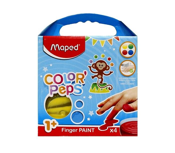 COLOR'PEPS Tintas mapeadas para pintura a dedo, dedicadas a crianças a partir de um ano de idade. As tintas possuem alto teor de pigmentos e muito boas propriedades de cobertura, permitindo criar pinturas incríveis. É muito divertido, mas também seguro, porque as tintas foram testadas dermatologicamente. O conjunto é composto por 4 tintas em embalagens de 80 g em cores vivas.