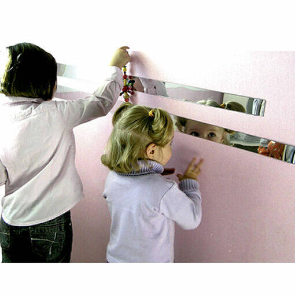 Essas bordas espelhadas são úteis para decorar a parede e, ao mesmo tempo, proporcionam horas de observação e brincadeira.